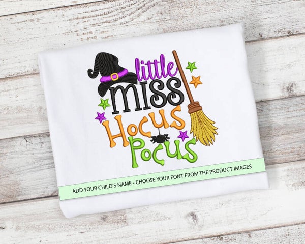 Little Miss Hocus Pocus Halloween Shirt. Shirt sizes 2T-10 and bodysuit sizes 0/3 months - 12-18 months.